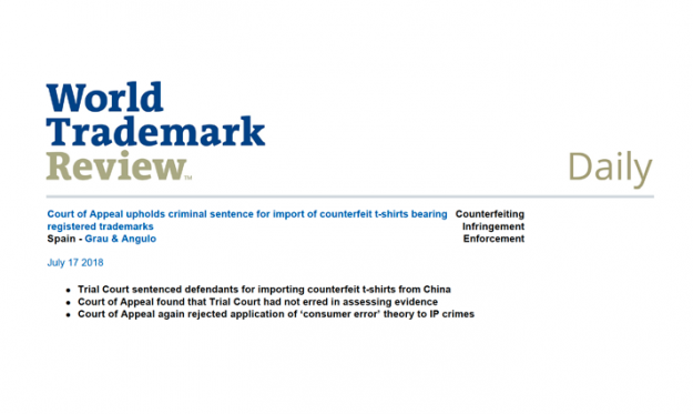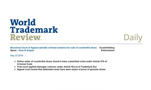 Spain – Grau & Angulo May 23 2018 On February 23 2018 the Barcelona Court of Appeal dismissed the writ of appeal filed by an online seller of counterfeit shoes against a condemnatory judgment issued by Barcelona Trial Court Number 9 on October 27 2017, confirming the judgment in its entirety. Barcelona Trial Court Number…